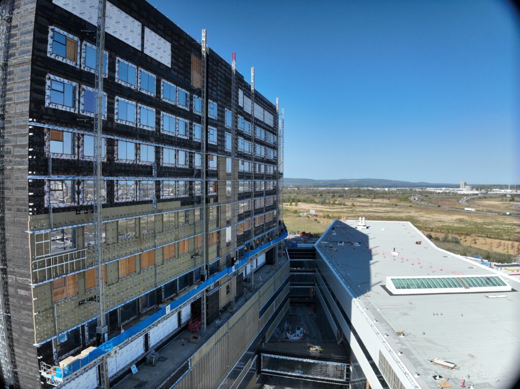 - Le 9e étage prend forme avec les travaux de coffrage et de bétonnage (automne 2024);